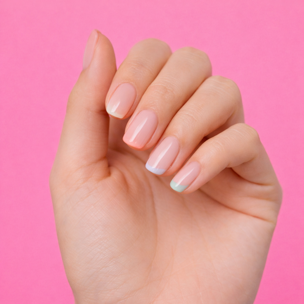 I’ve been seeing this done with soft pink or milky bases, paired with a subtle coral or pastel tip. It’s a good way to bring in colour without it feeling like too much, especially if you usually prefer something more understated.